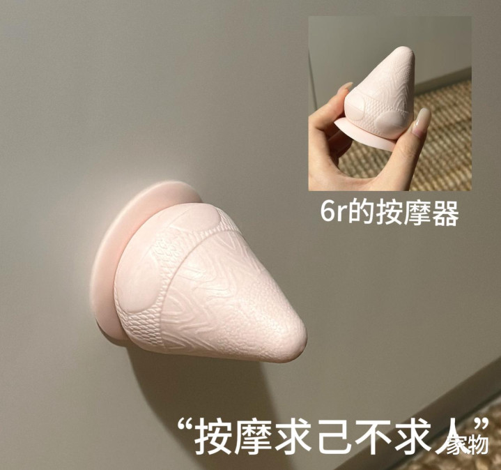 乍一看有些奇怪的这个锥形按摩器,实际上是个按摩头,它后面带个吸盘,可以直接吸在瓷砖墙或者是光滑的床头上,没事儿了后背靠上去就可以起到点按的按摩效果了。