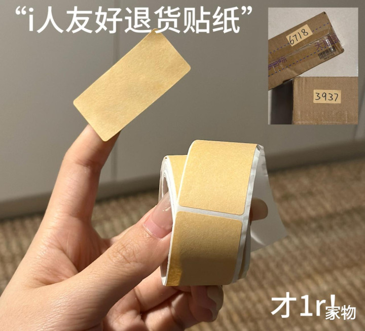 我妈就聪明多了,直接买了一卷这样的牛皮纸贴,直接贴到快递标签上,既可以起到遮挡作用,又能直接把退货码写好放门口,别看这么一卷才一块多点,但用起来真的超级方便。