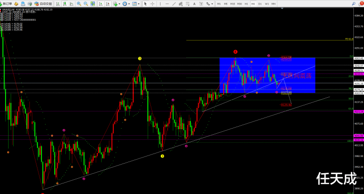 【3】 多单等待现价提示。目前待定三个点4142-4132-4122附近